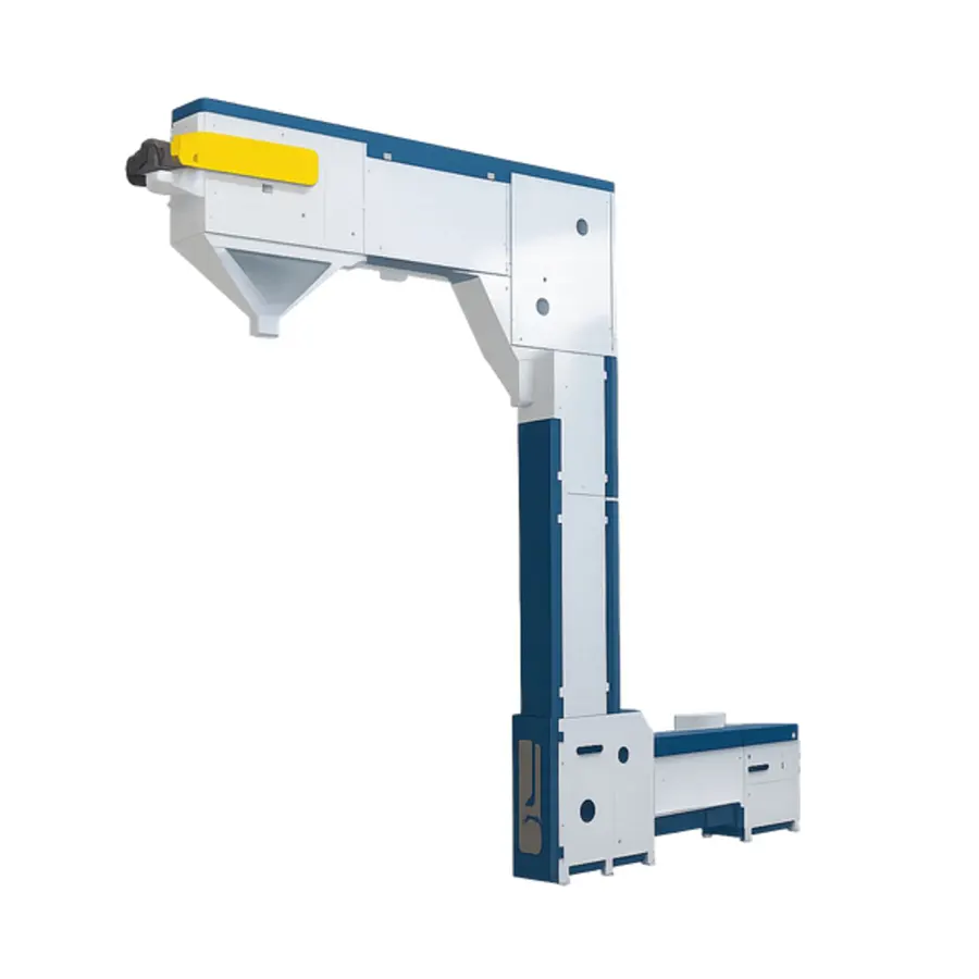 Indicado para o transporte de sementes quando há necessidade de desnível com mudança de direção, o elevador em Z permite movimentação suave, reduzindo impactos e preservando a integridade da semente. É ideal para layouts compactos e sistemas que exigem maior flexibilidade.